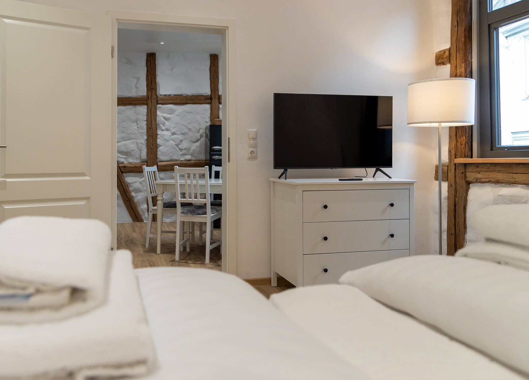 Wohnen mit Geschichte – stilvolle Apartments im charmanten Altbau mit sichtbaren Balken und besonderem Flair.
